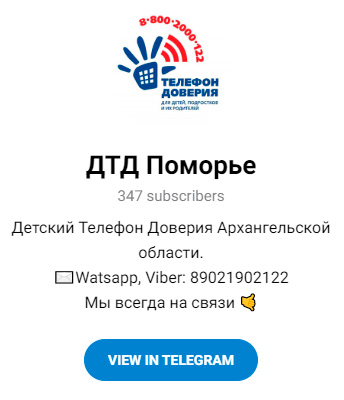 Представляем вашему вниманию Cообщество в Телеграмм "Детский Телефон Доверия Архангельской области", созданное Северодвинским центром "Солнышко".
