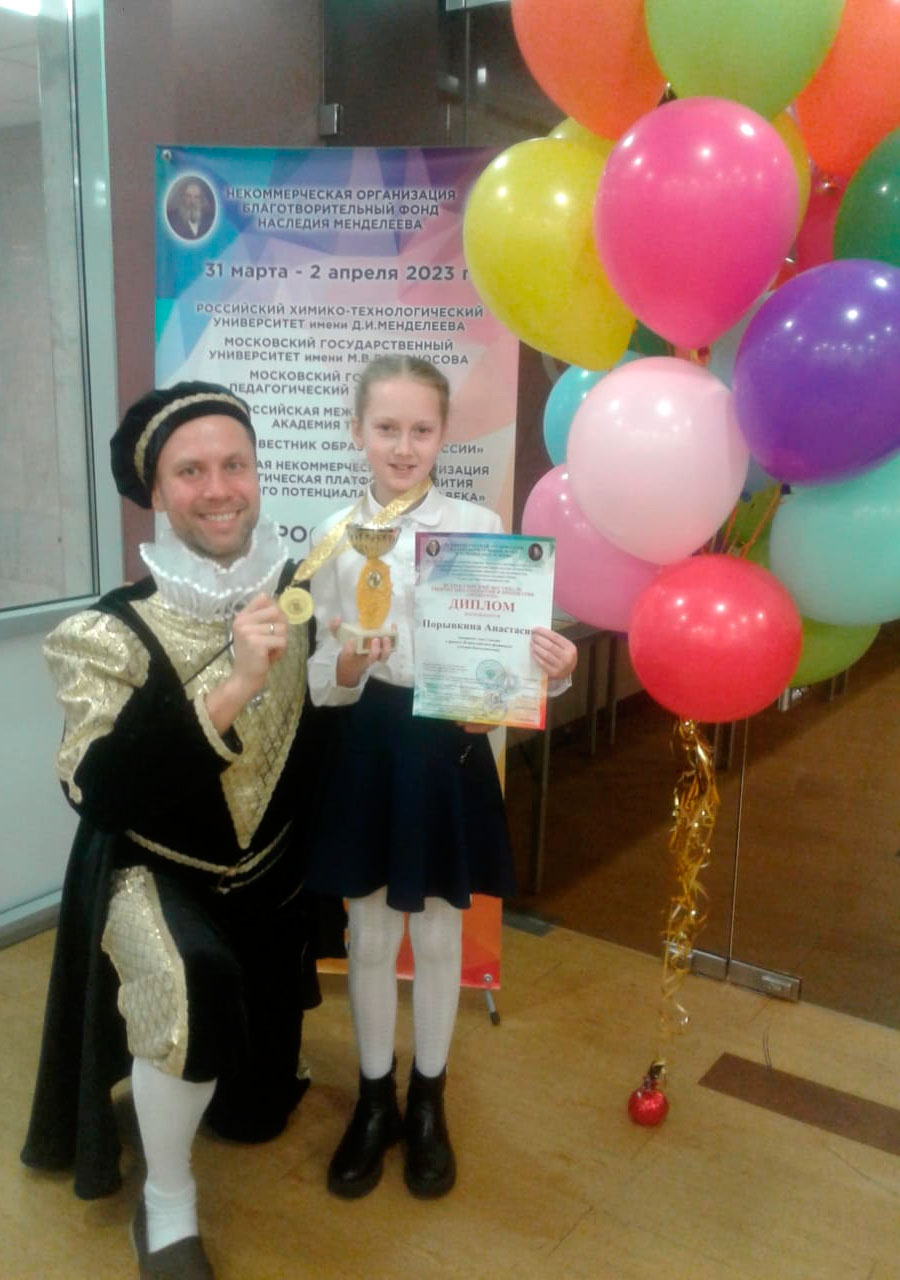 В школу пришла отличная новость! Наша ученица 4Б класса Порывкина Анастасия стала победительницей на Всероссийском фестивале творческих открытий и инициатив "Леонардо". Научный руководитель Насти - ее первый учитель, учитель начальных классов, ее наставник - Ластина Марина Николаевна.